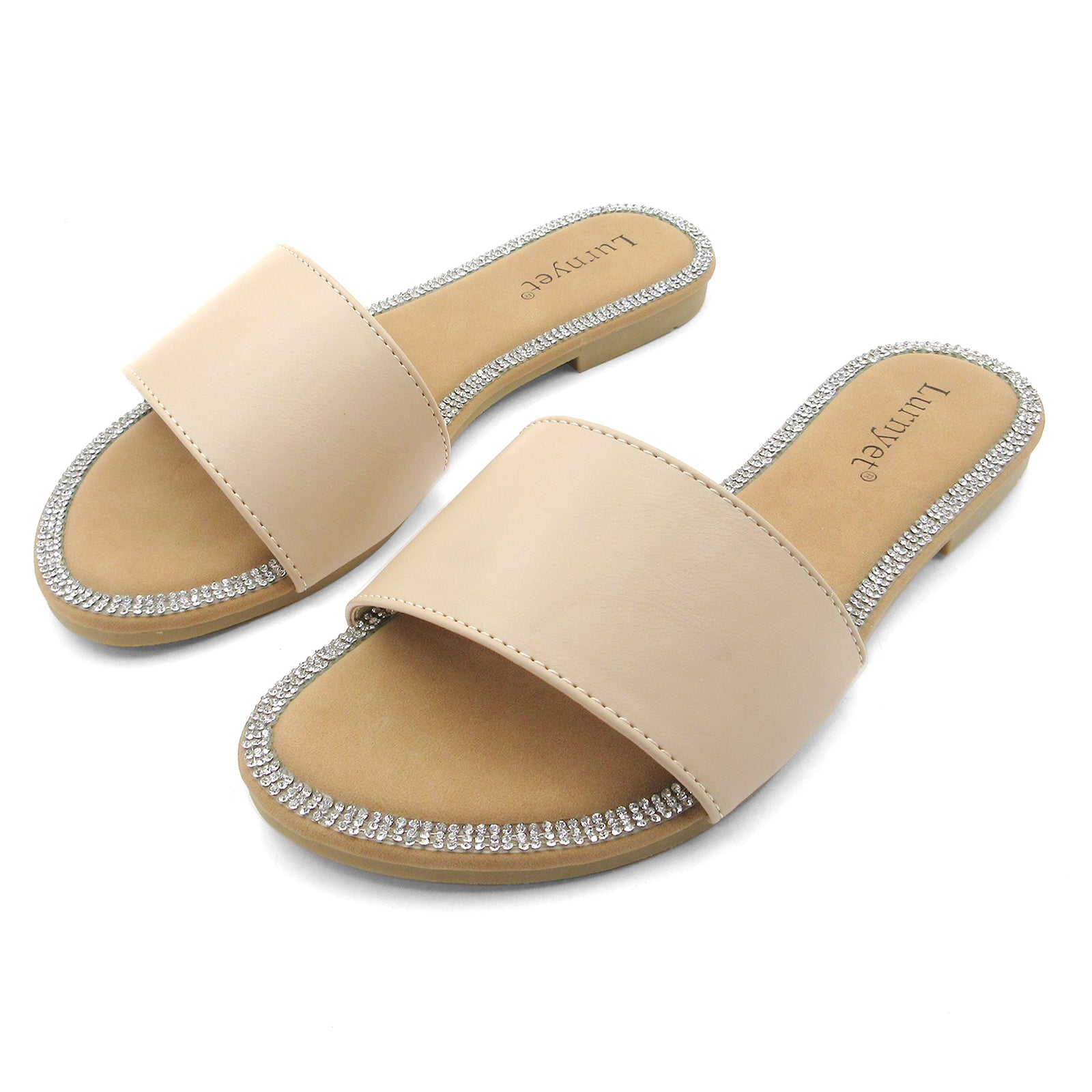 Stylish Design: Elevate your summer wardrobe with our Women's Flat Sandals featuring a stunning rhinestone glitter design that adds a touch of bling, making you look effortlessly beautiful and fashionable.